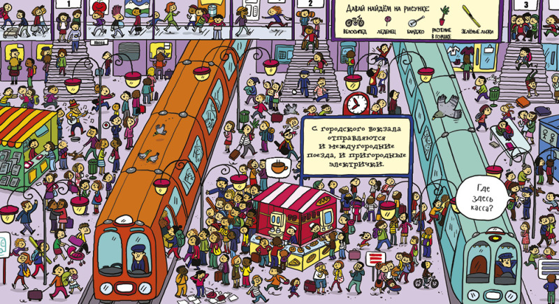 Хорошая альтернатива дорогой книге "Найди и покажи". Суть та же - искать предмет среди кучи мелких изображений, просто страницы не картонные, а тонкие, как в журнале, но качество бумаги очень хорошее. Все яркое, красочное. Подходит для детей с 3 лет, я думаю.