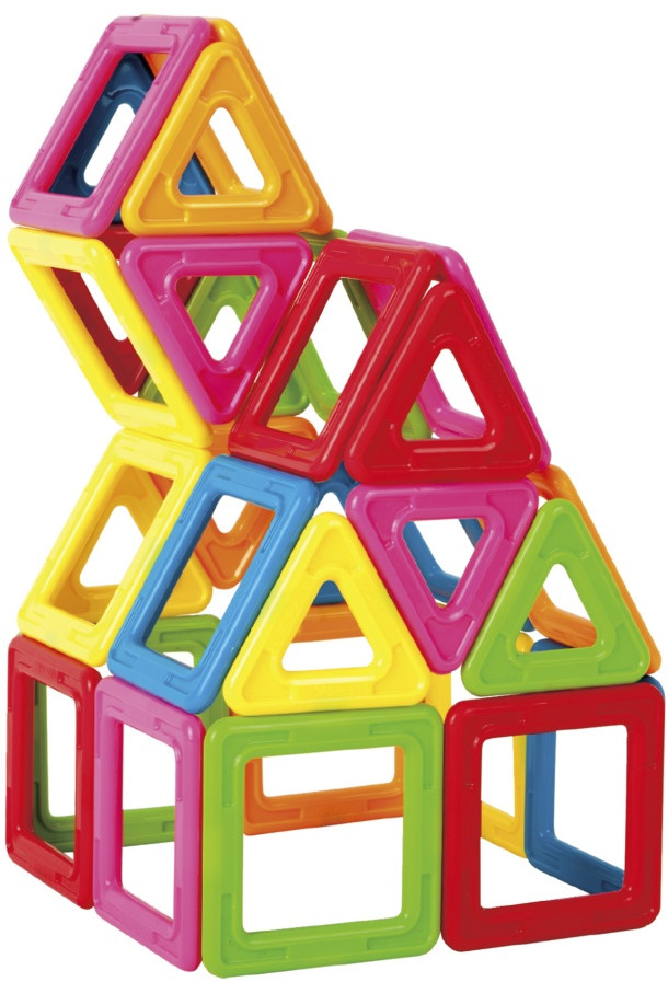 Хороший конструктор. Понравилось, что в комплекте есть книжка с формами и картинки с образцами объемных фигур. Коробка удобна для хранения.