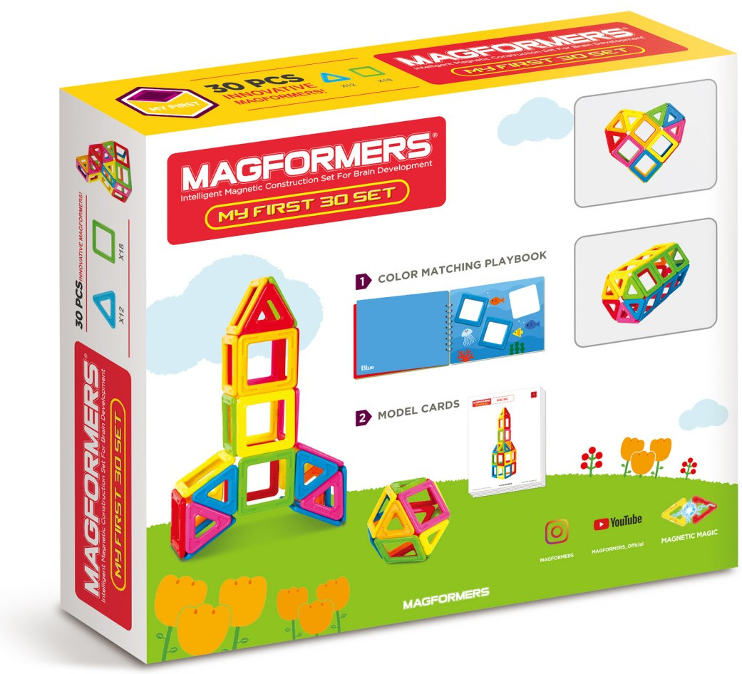 Magformers Магнитный конструктор «My First 30»В данный момент этот товар отсутствует в продаже. Возможно, у нас найдется аналогичный или похожий товар здесь. Серия: My First Set Line С набором «Magformers My First 30» вы сможете заниматься с вашим ребенком изучением цветов и геометрических форм в более старшем возрасте. Дальше можно переходить к изучению объемных фигур и созданию первых построек. |