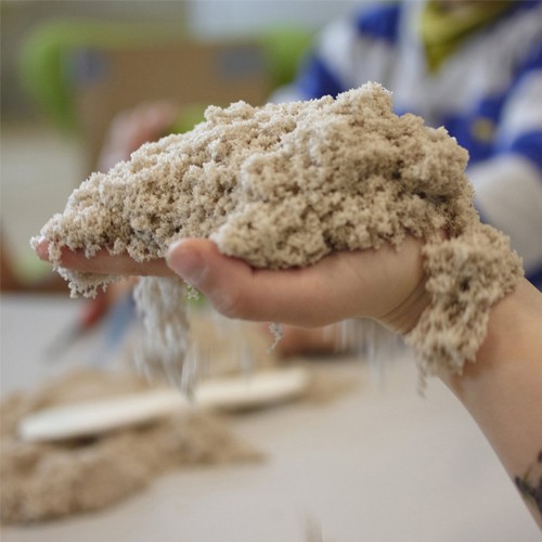 Хорошая вещь - занимает ребенка, развивает фантазию. Легко убирается, не теряет своих свойств (третий день держится, на упаковке написано, что срок годности безграничен). Если промокнет, можно высушить и песок придет в свою норму. Материал не "капризный". На упаковке написано, что изготовитель - Швеция.