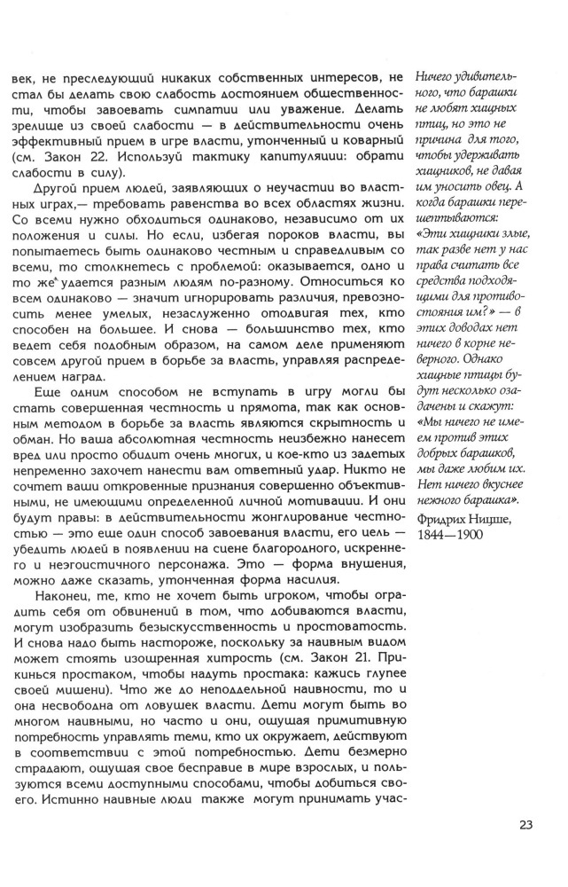 Это самая аморальная, самая скандальная, самая циничная... и самая правдивая книга о власти, начиная с незамысловатой, бытовой и кончая президентской. Отныне, познав блестяще сформулированные и подкрепленные интереснейшими и неожиданными историческими фактами жесткие и жестокие законы поведения во власти, вы без труда распознаете то, что стоит за теми или иными словами и поступками «маленьких» начальников и сильных мира сего, то, что так тщательно они пытаются скрыть. |