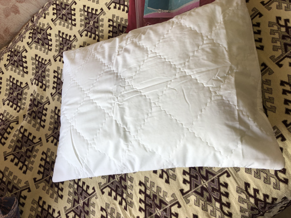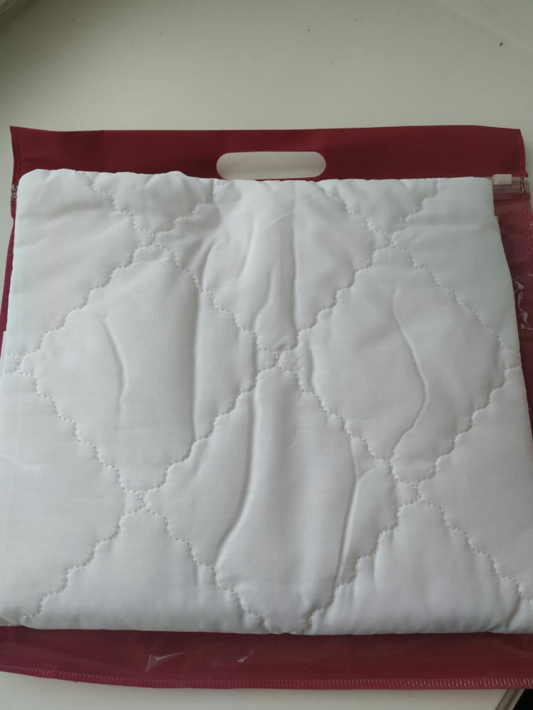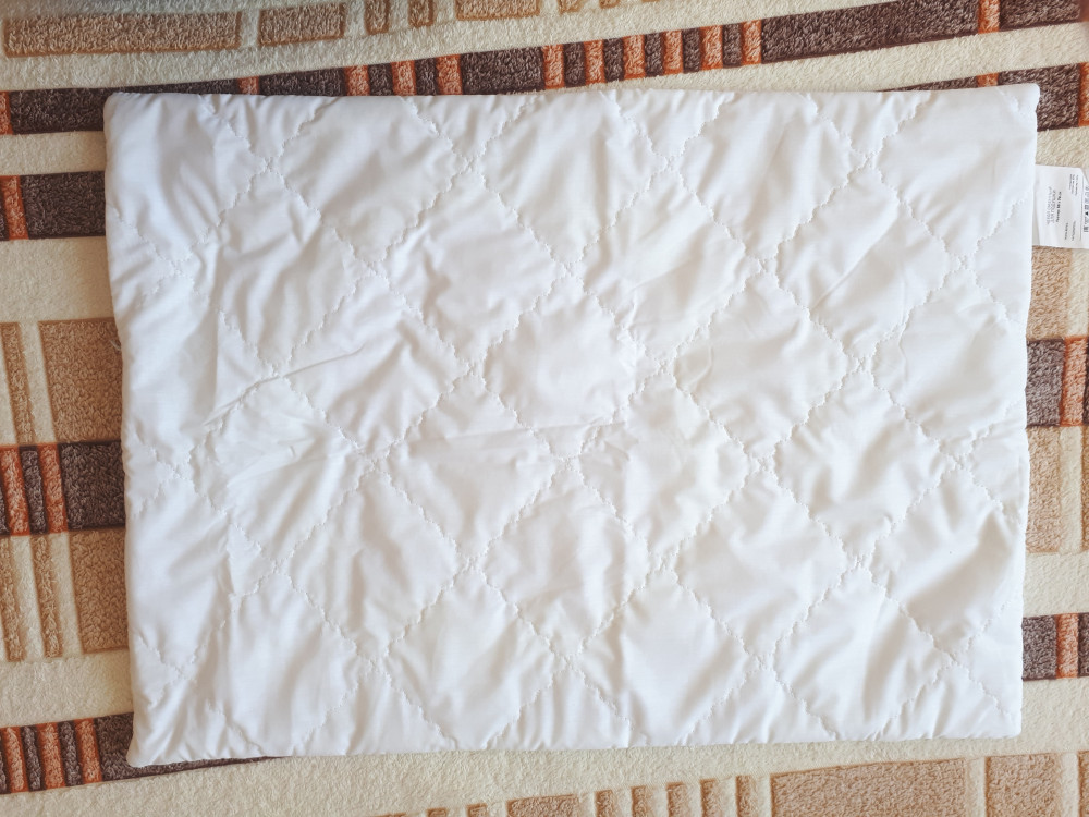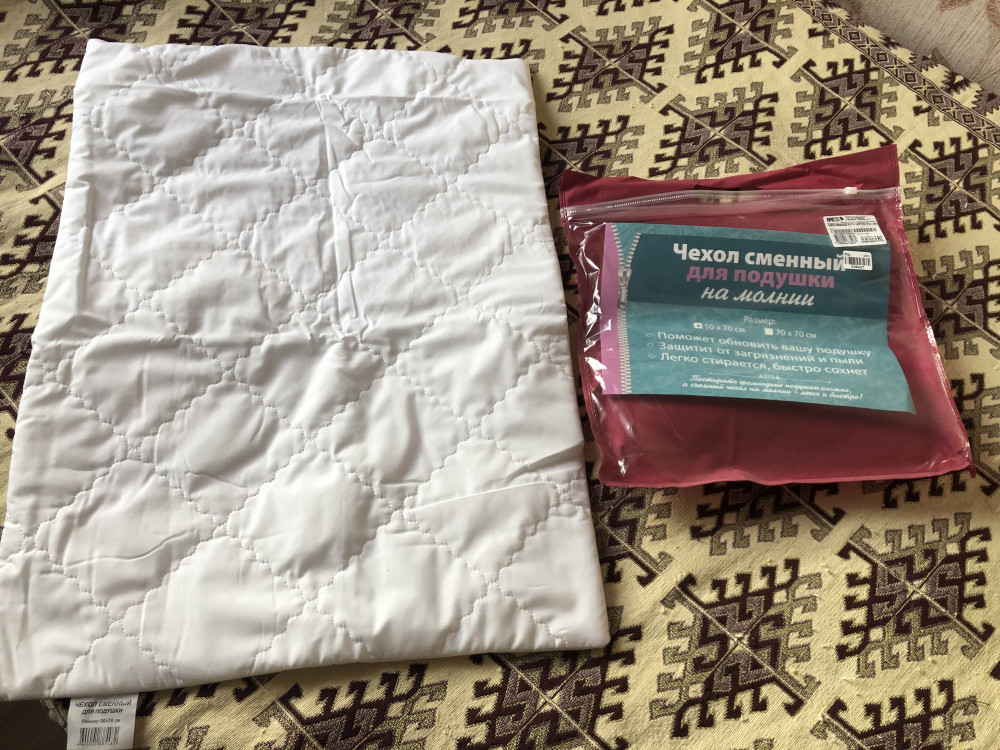 Отличный чехол, ткань гладкая, приятная, внутри тонкий слой уплотнителя-синтепона, наверное, и подложка. Мягенький, простеган идеально ровно, замочек потайной, качественный. Цвет белый без всяких рисунков. Если подушка у вас проваливается и подходит вам по плотности и под изгибы, то чехол дает плотность дополнительно, для худеньких может быть неудобно. Моя подушка без него была мягче, с ним стала плотнее и пожестче немного. Для мужчин больше подойдет, я думаю. Для людей с весом больше чем 57 кг будет идеально, а худенькие подумайте. Хотя смотря какая подушка у вас.