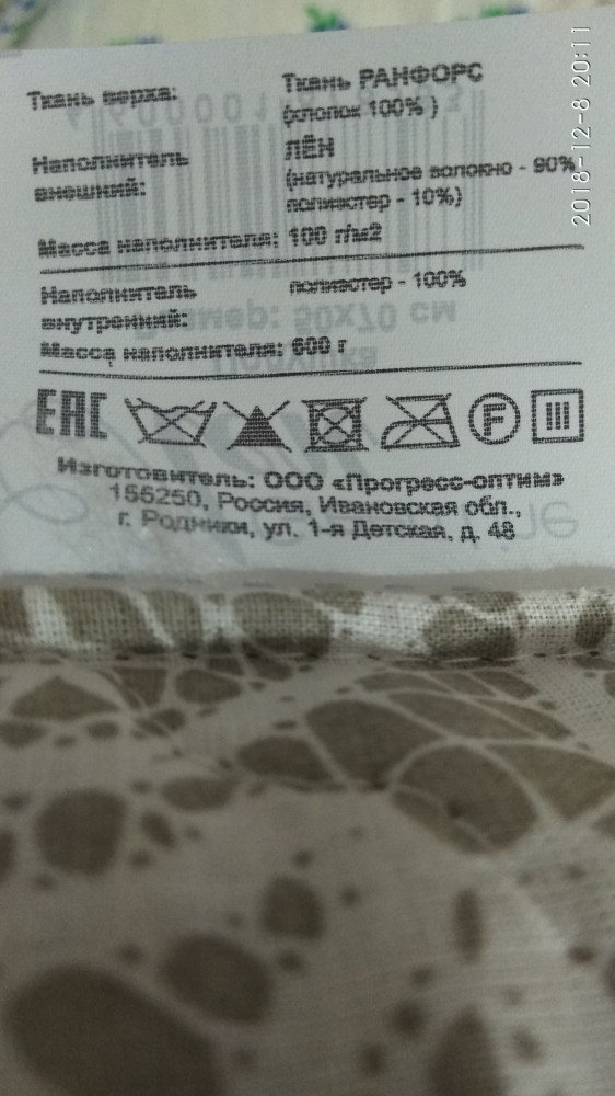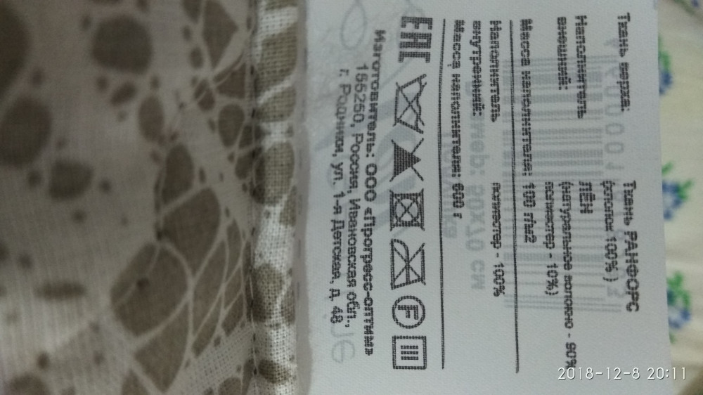 Заказываю второй раз. Подушка сшита хорошо. Ткань натуральная. Рисунок красивый. Просвечивается через светлые наволочки. Только сейчас обратила внимание на этикетку(фото приложила) , там указано, что подушка состоит из двух видов наполнителя. Внешний на 90% лен, на 10% полиэстер. А внутренний- это 600 граммов 100% полиэстер. Наверное сделана как"сосиська в тесте". Замка нет, чтобы заглянуть во внутрь, а пороть не хочу. За месяц использования объем подушки уменьшился.