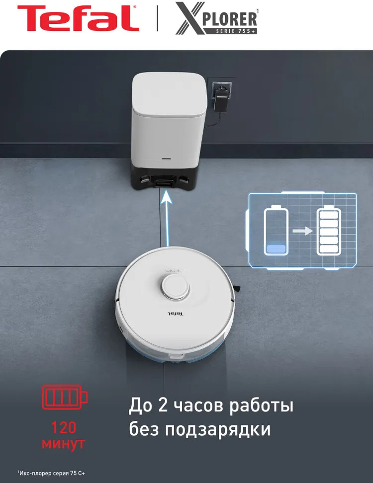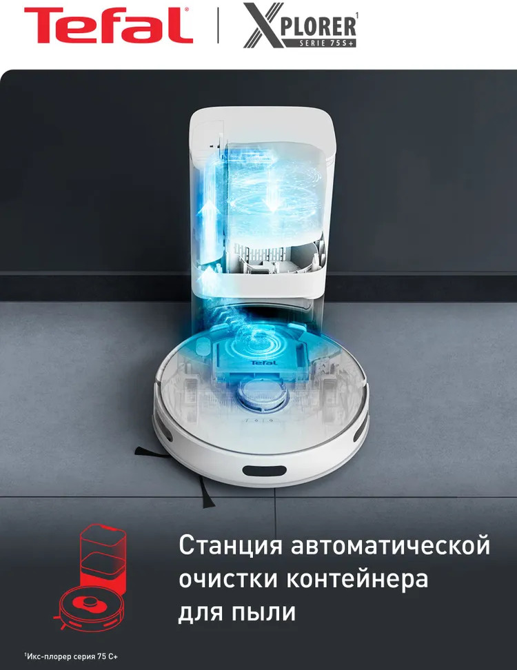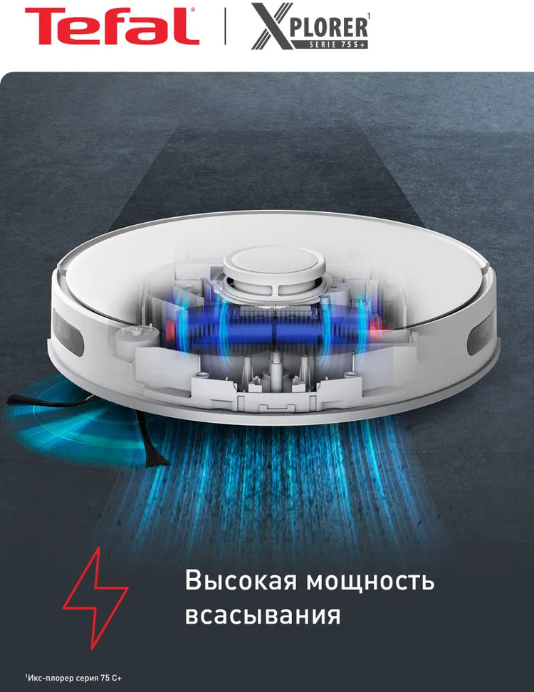 X-plorer Serie 75S+ — самый умный робот-пылесос, который оснащён высокоточной системой навигации, полностью автоматизированной функцией самоочистки и выстраивания карты помещения, которые обеспечивают высококачественную уборку дома без вашего участия. Подарите вашему дому безупречную чистоту, а себе — больше свободного времени.