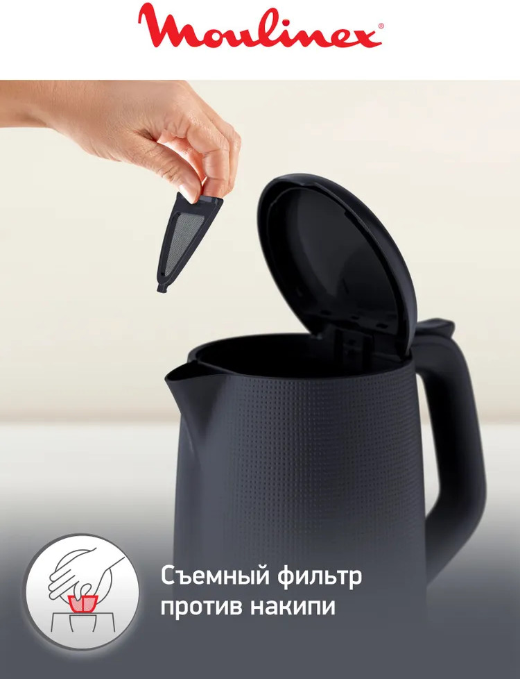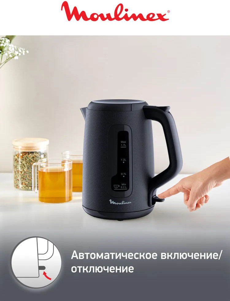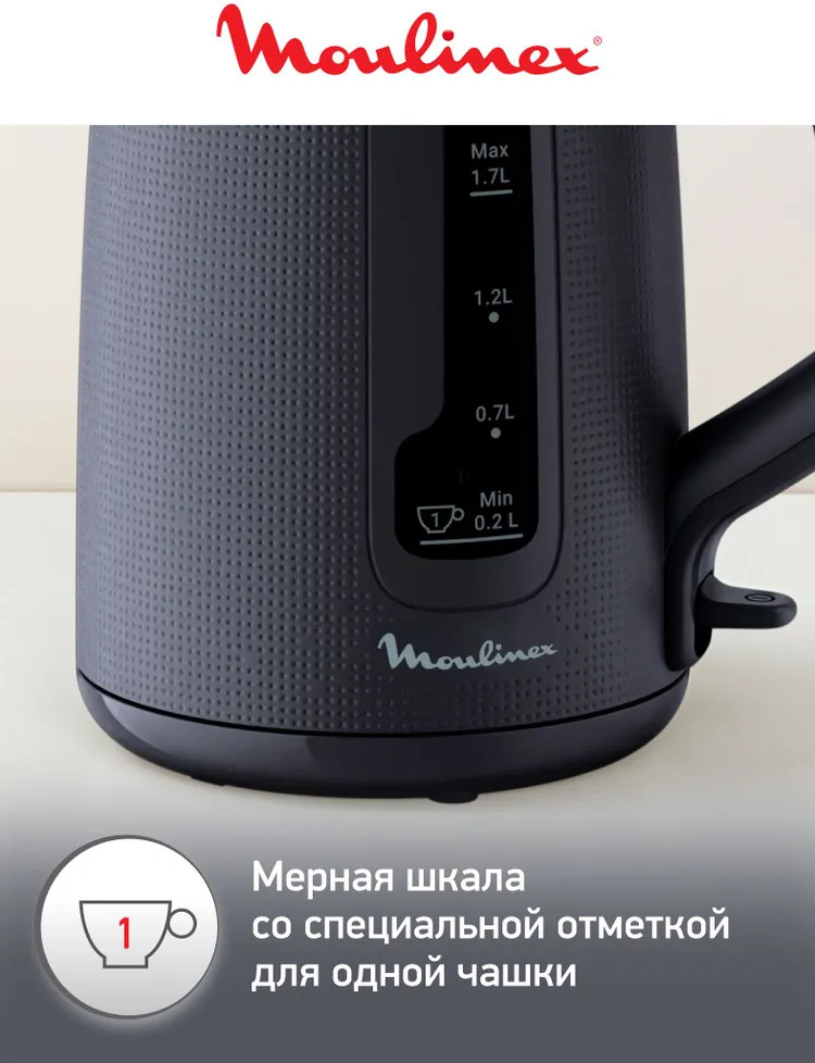 Минималистичный, но запоминающийся современный дизайн делает чайник MOULINEX Morning BY2M0810 не просто бытовым прибором, а настоящим украшением кухни. Благодаря мерной шкале вы всегда будете наливать нужное количество воды, а специальная отметка поможет вскипятить ровно столько, сколько нужно для одной чашки.