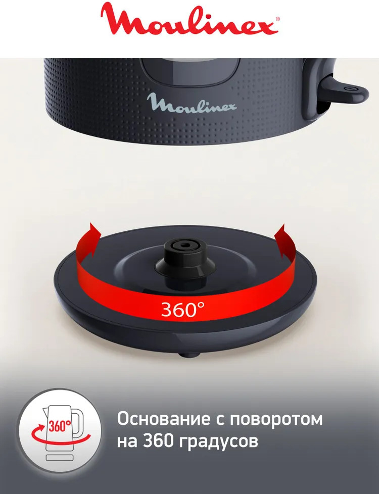 Подставка с вращением на 360° позволяет ставить и снимать чайник с любой стороны, обеспечивая удобство использования. Качество и надежность, подкрепленные обязательством сохранять ремонтопригодность прибора в течение 15 лет.