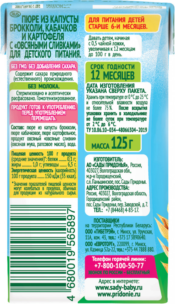 Сады Придонья Крем-супчик «Брокколи с овощами и овсяными сливками»