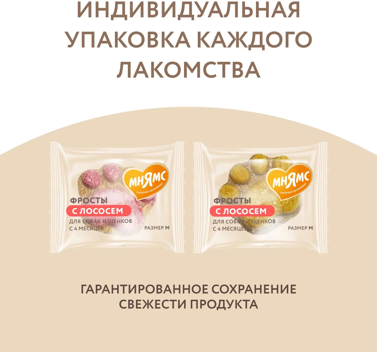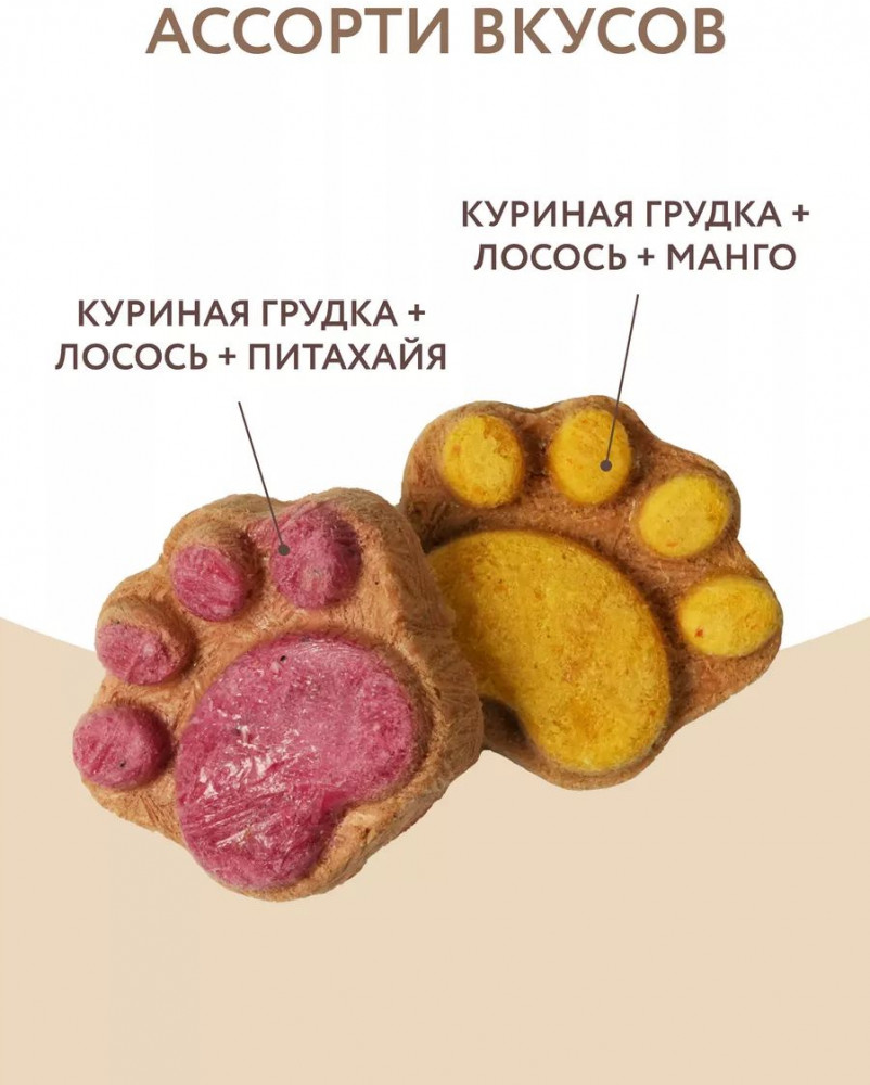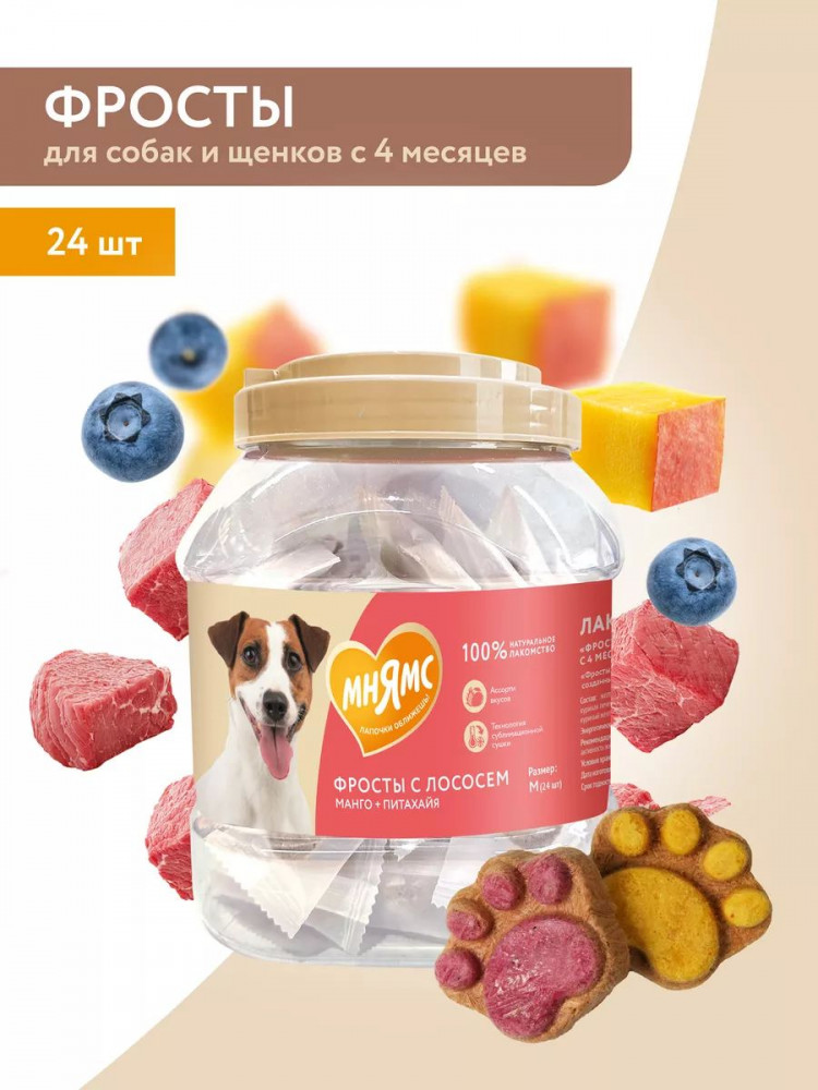 Мнямс Лакомство для собак и щенков с 4 месяцев «Фросты с лососем, манго и питахайей. Размер M»