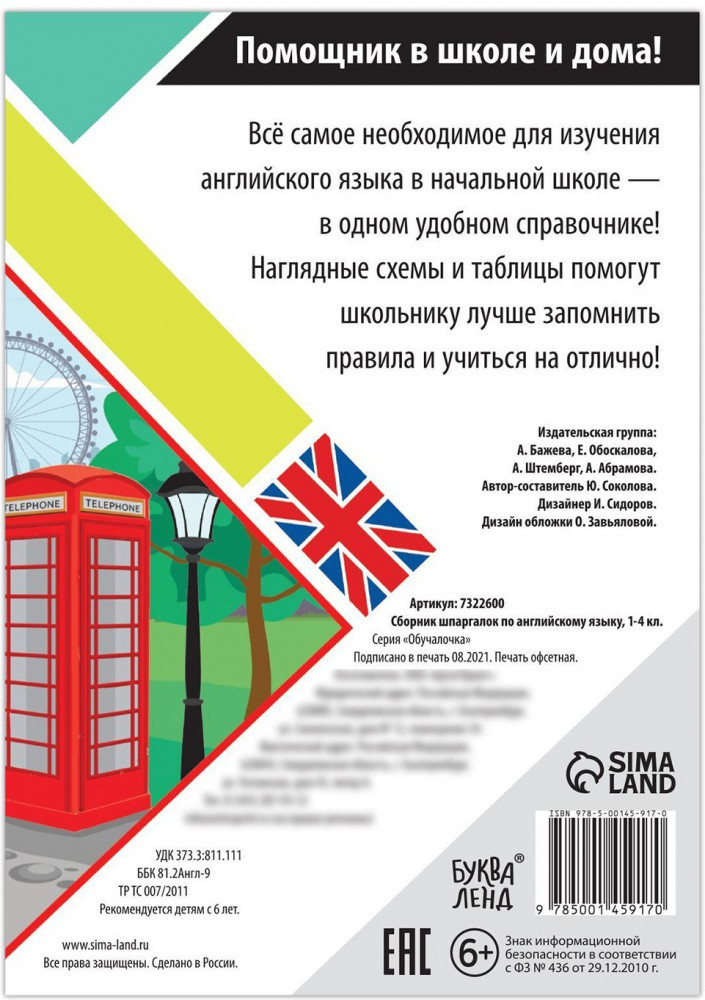Сборник шпаргалок поможет закрепить материал, полученный на уроках английского языка. Информация в пособии хорошо структурирована и дана в форме таблиц и схем. Сборник пригодится при выполнении домашнего задания и подготовке к контрольным работам. Пособие предназначено для учеников 1‒4 классов и их родителей. |