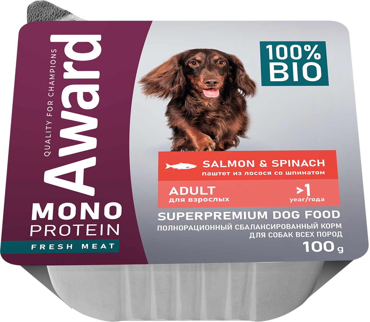 Корм влажный для взрослых собак «Паштет из лосося со шпинатом» | Monoprotein | Award