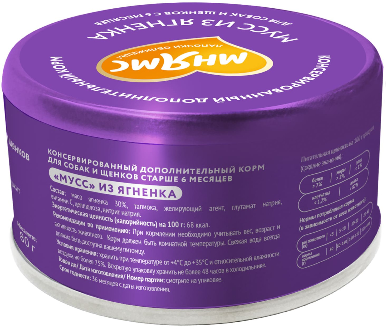 Мнямс Корм влажный дополнительный для собак «Мусс из ягненка»
