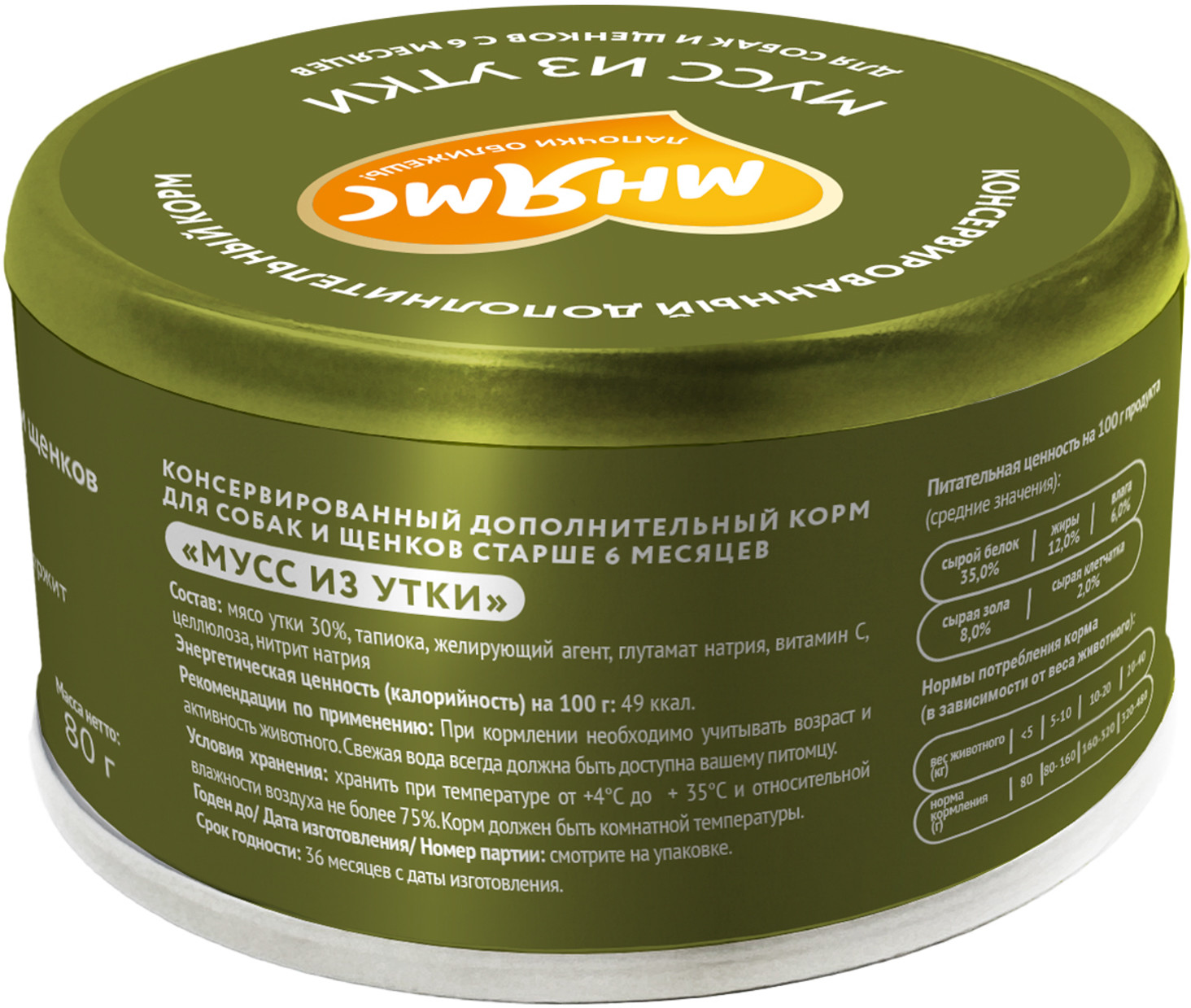 Мнямс Корм влажный дополнительный для собак «Мусс из утки»
