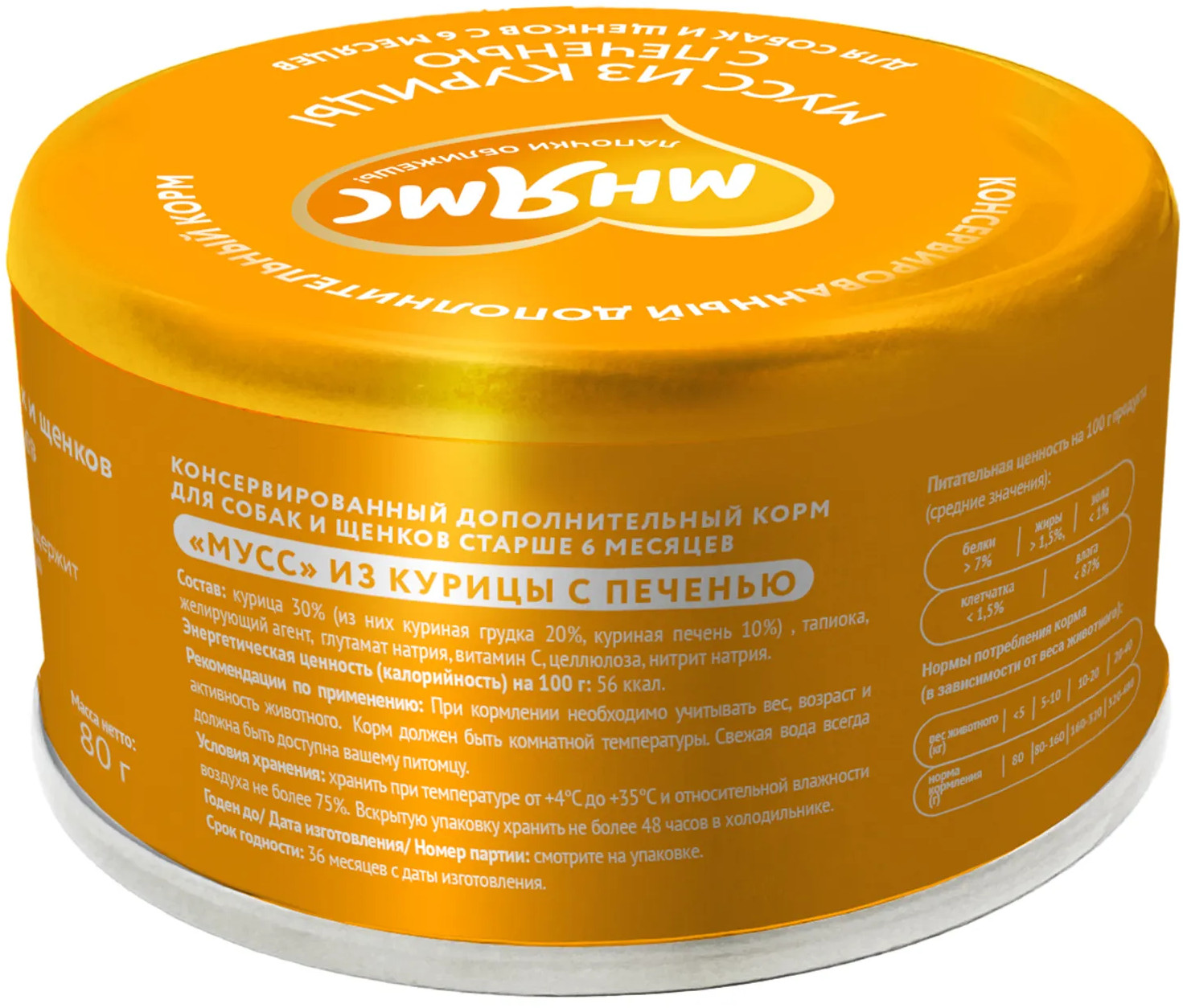 Мнямс Корм влажный дополнительный для собак «Мусс из курицы с печенью»