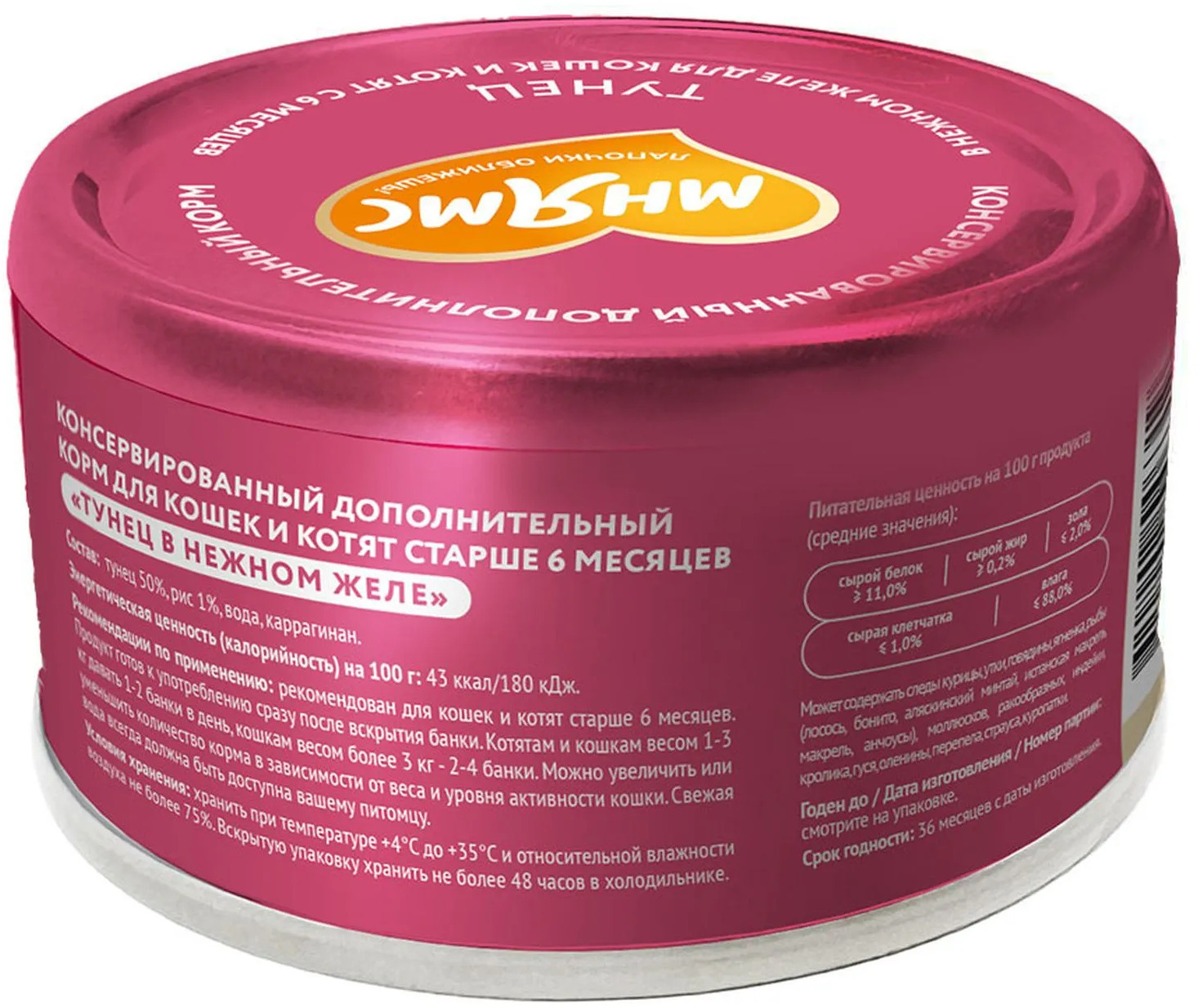 Мнямс Корм влажный дополнительный для кошек «Тунец в нежном желе»