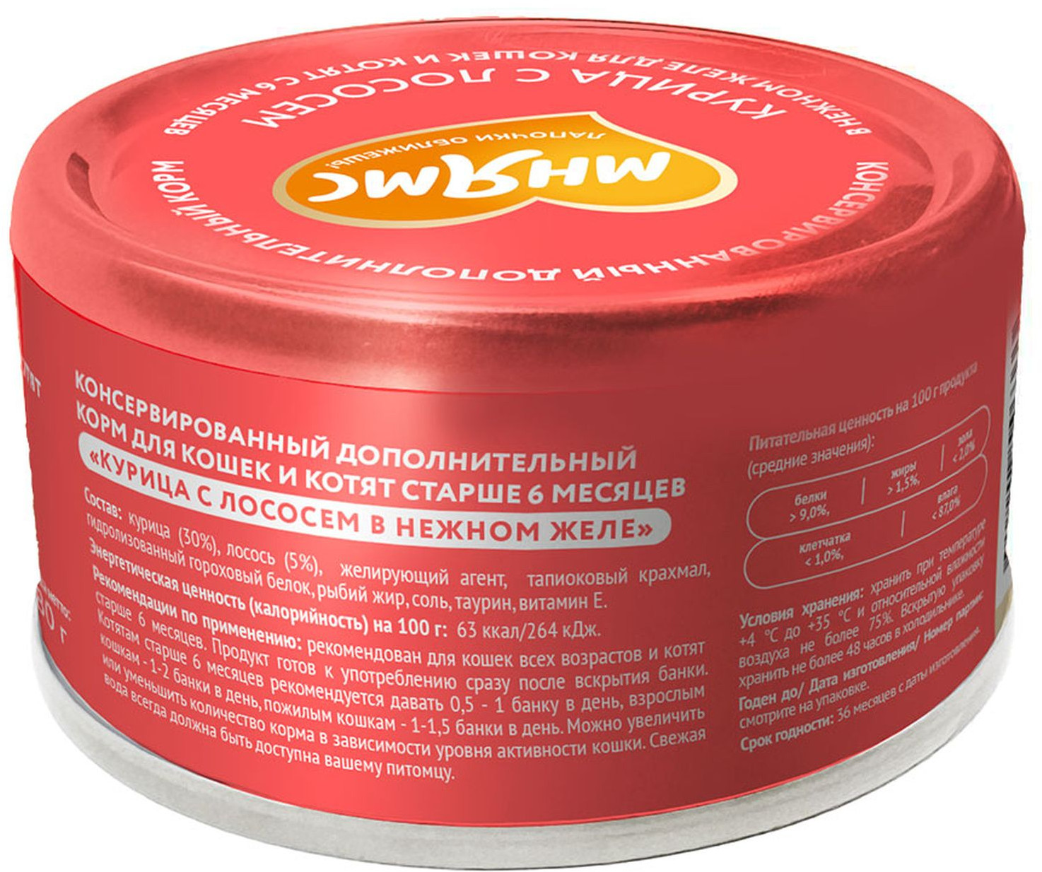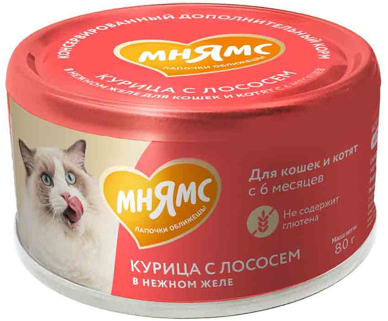 Мнямс Корм влажный дополнительный для кошек «Курица с лососем в нежном желе»