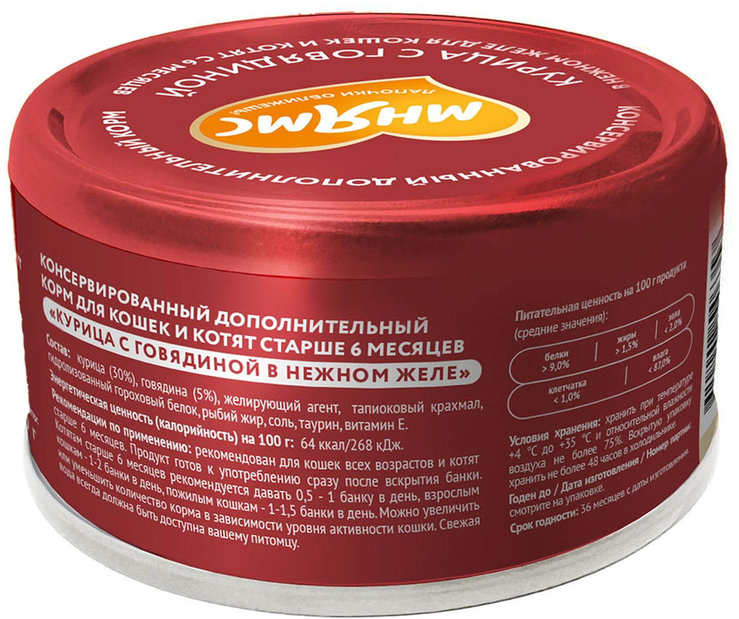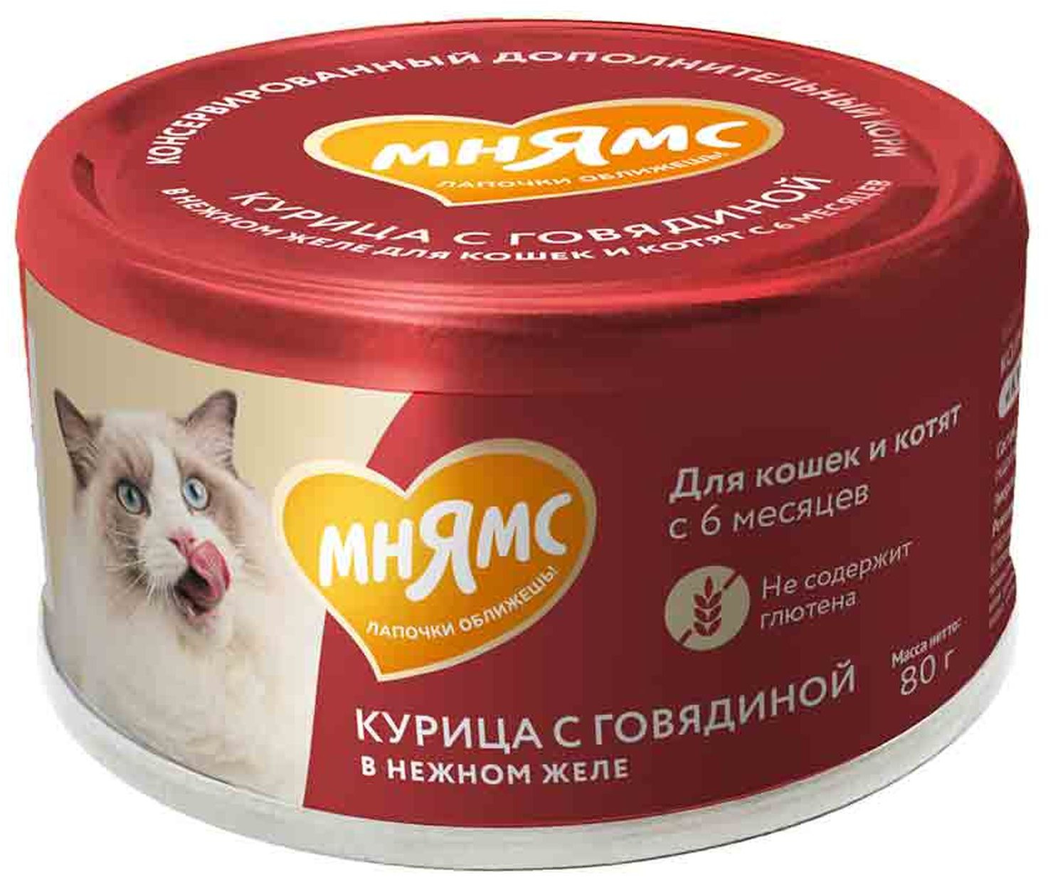 Мнямс Корм влажный дополнительный для кошек «Курица с говядиной в нежном желе»