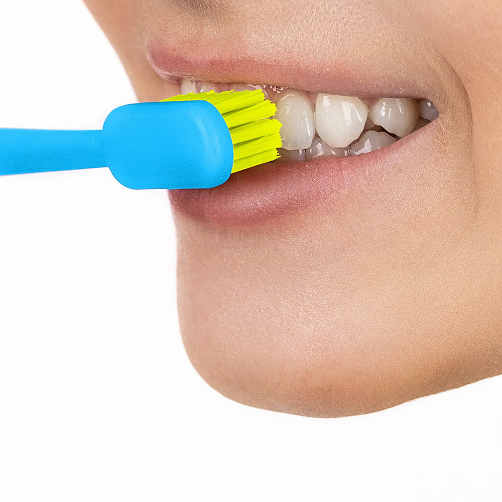 Упругая пропиленовая ручка эргономичной формы позволяет чистить зубы под правильным углом, снижая давление чистящей головки на поверхность зубов.