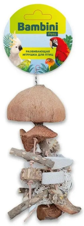 Развивающая, многогранная игрушка, созданная для заботливых владельцев крупных птиц и некоторых грызунов! Уникальный дизайн из натуральных материалов, таких как скорлупа кокоса, сепия, люфа и ореховое дерево, придает игрушке особый шарм и привлекает внимание вашего питомца. Ваш питомец будет в восторге от изучения различных компонентов игрушки: текстуры, плотности, запахов. Каждая игрушка собирается вручную с любовью и вниманием к деталям, чтобы обеспечить долговечность и безопасность использования. Удобное крепление позволяет легко закрепить игрушку в клетке. Bambini Pets: делаем жизнь малышей лучше и радостнее! |