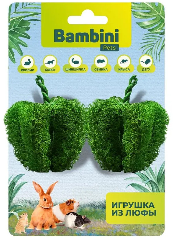 Съедобная игрушка из люфы для маленьких питомцев, таких как кролик, крыса, морская свинка, шиншилла, дегу, хорёк и даже крупных птиц! Эта удивительная игрушка выполнена из экологичного природного материала — люфы, что делает ее абсолютно безопасной для ваших любимцев. Игрушка помогает наладить эмоциональный контакт между любящим владельцем и его питомцем! Чем больше вы проводите время с любимцем, тем больше вы друг друга начинаете понимать и доверять! Кроме того, игрушка из люфы еще и полезна для здоровья ваших питомцев! Благодаря своей крупноволокнистой текстуре, она профилактирует образование зубного налёта у зверюшек! Bambini Pets делает жизнь малышей лучше и радостнее! |
