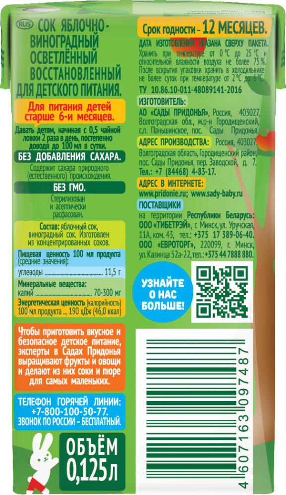 Сады Придонья Сок осветлённый «Яблоко-виноград»