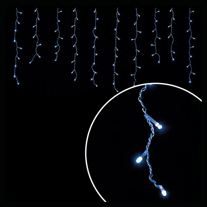 Светодиодная гирлянда для применения внутри помещений. Выполнена в виде бахромы — от рабочей части гирлянды длиной 1.5 метра отходят линии длиной 50 см. Общая длина гирлянды: 1.8 м. Провод прозрачного цвета. 48 экономичных светодиодов светятся голубым светом. 8 режимов мигания. Гирлянда подключается к сети 220В. Материал: ПВХ, алюминий, медь. Соединение гирлянд невозможно. |