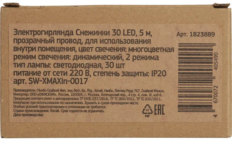 Электрогирляндановинка В данный момент этот товар отсутствует в продаже. Возможно, у нас найдется аналогичный или похожий товар здесь. Светодиодная гирлянда для использования внутри помещений. Незаменимый аксессуар для создания новогоднего настроения, а также любого декора и атмосферы, как праздничной, так и романтической. Выполнена в классическом виде - прямая линия со светодиодными лампочками в форме снежинок. Безопасна при использовании как на новогодней ели, так и мебели, шторах и т .д. Количество лампочек: 30. Цвет лампочек: разноцветый - 8 цветов. Длина: 9 м. Режим свечения: вспышка. Степень защиты: IP20. Тип питания: батарейка и подключение к сети. Соединяемость: нет. |
