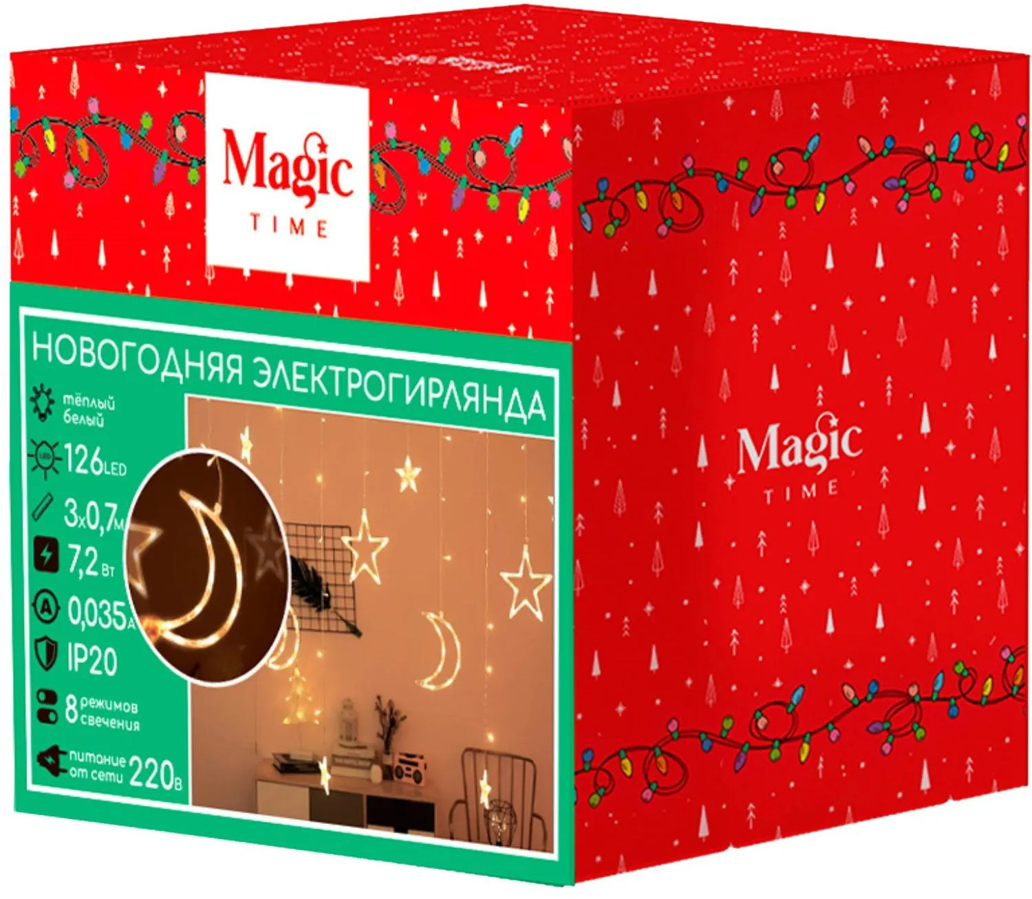 Электрогирлянда Magic Time Бахрома тёплый белый свет 126 светодиодов (3 м). Новогодняя электрическая гирлянда украсит интерьер Вашего дома или офиса в преддверии Нового года. Оригинальный дизайн и красочное исполнение создадут праздничное настроение. Откройте для себя удивительный мир сказок и грёз. Почувствуйте волшебные минуты ожидания праздника, создайте новогоднее настроение вашим дорогим и близким. Новогодняя электрогирлянда на 126 LED ламп, размер 300 cм, длина вертикально висящих нитей от 25 до 70 см, напряжение 220 B, мощность 7,2 Вт, сила тока 0,035 А, тёплый белый, 8 режимов, питание от сети переменного тока 220 Вольт. |