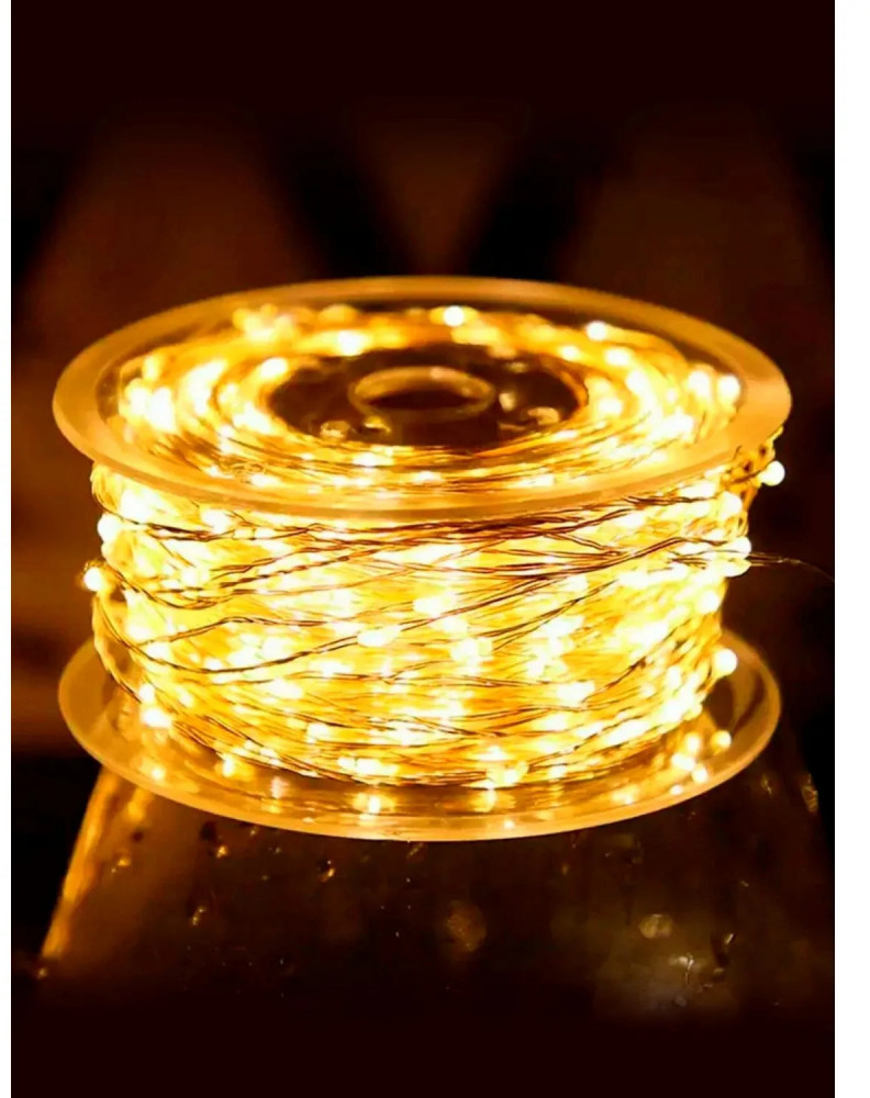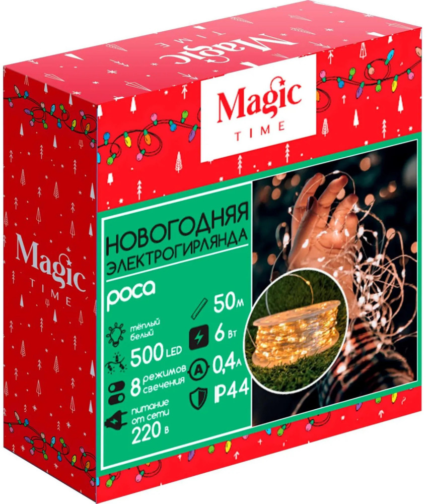 Электрогирлянда Magic Time Нить тёплый белый свет 500 светодиодов (50 м). Новогодняя электрогирлянда эффектно преобразит интерьер дома. 500 LED лампочек можно поместить на ёлку или же украсить ею стены. Тёплый свет подарит ощущение уюта и тепла в доме. Длина гирлянды 5000 см, 500 LED ламп, напряжение 220 B, мощность 6 Вт, сила тока 0,4 А, тёплый белый, 8 режимов, питание от сети переменного тока 220 Вольт. |