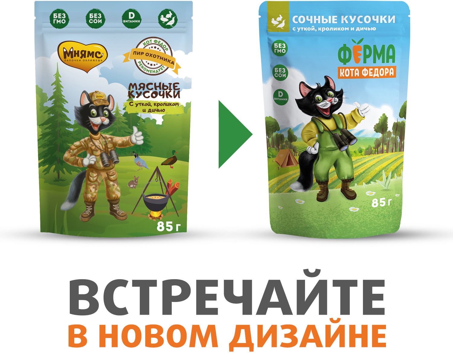 Ферма кота Федора Корм для кошек «Мясные кусочки с уткой, кроликом, дичью»