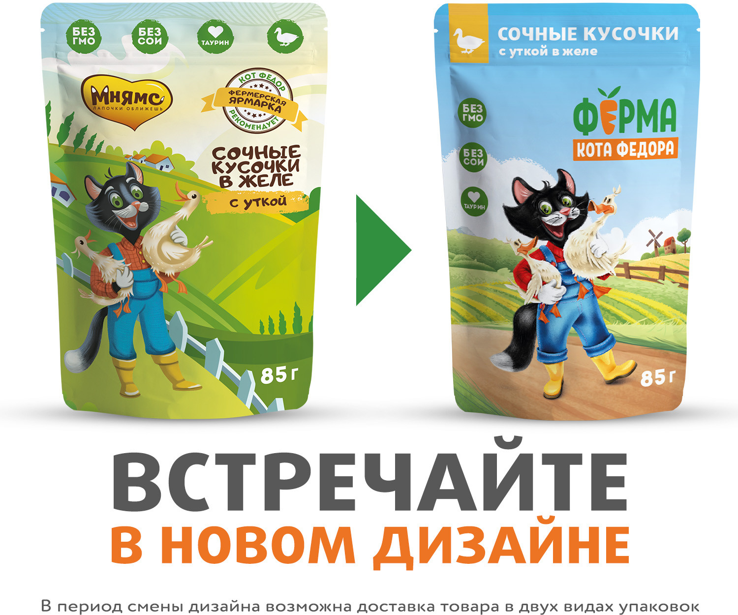 Ферма кота Федора Корм для кошек «Сочные кусочки с уткой в желе»