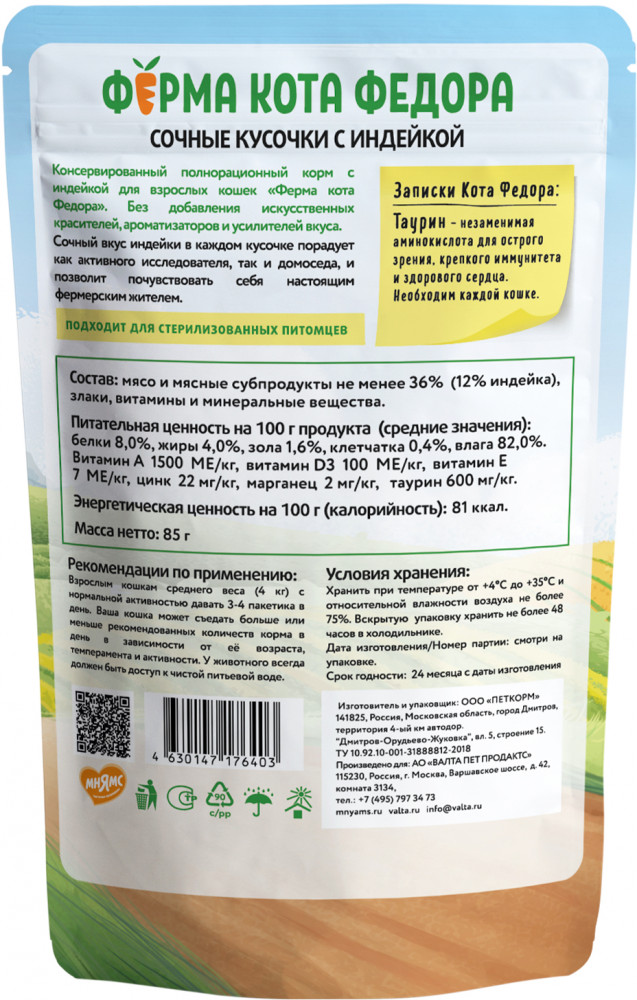 Ферма кота Федора Корм для кошек «Сочные кусочки с индейкой»