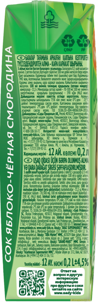 Сады Придонья Сок осветлённый «Яблоко-чёрная смородина»