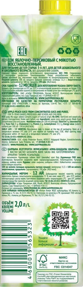 Сады Придонья Сок с мякотью восстановленный «Яблоко-персик»
