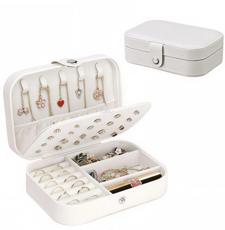 Шкатулка для украшений — дорожный органайзер белый с отделениями. Эта стильная и компактная шкатулка создана для тех, кто ценит порядок и удобство. Она поможет аккуратно хранить ваши украшения дома и брать их с собой в поездки, сохраняя идеальное состояние аксессуаров. Благодаря продуманным отделениям, каждая вещь будет на своём месте, а поиск нужного украшения займёт всего несколько секунд.