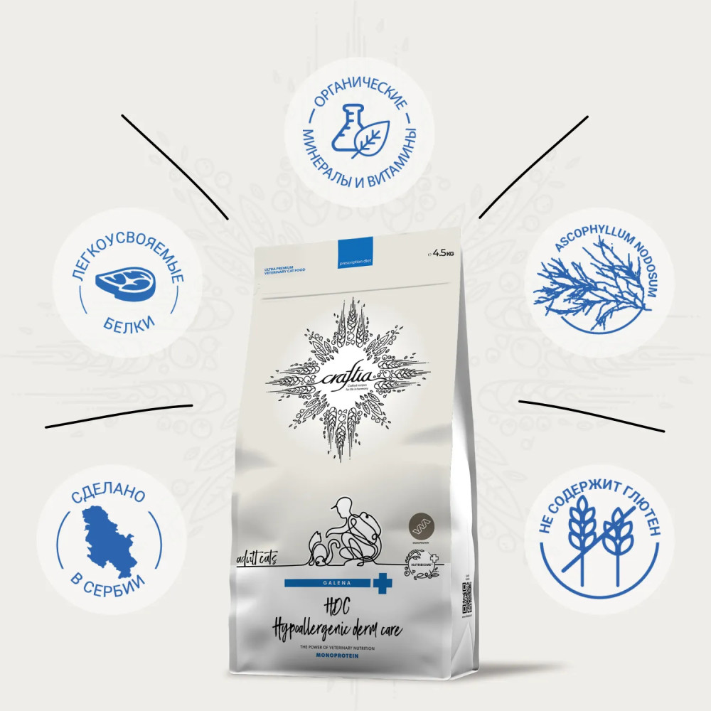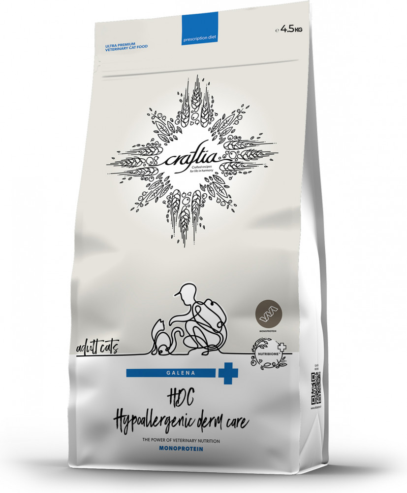 Craftia Сухой корм для кошек при пищевой аллергии «Hypoallergenic Derm care»