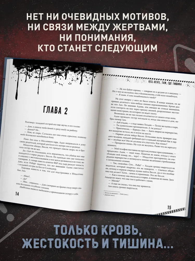 Билли Сэлинджер и Адам Миддлтон понимают: он не остановится. Его аппетиты растут, он хладнокровен, расчетлив и всегда на шаг впереди. Нет ни очевидных мотивов, ни связи между жертвами, ни понимания, кто станет следующим, — только кровь, жестокость и тишина... тишина, в которой таится новая атака.