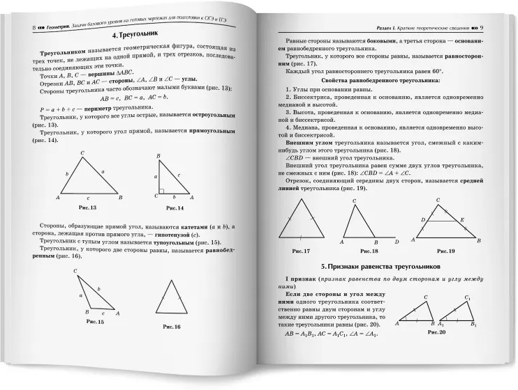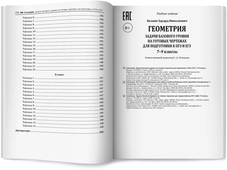 Серия: Большая перемена Предлагаемое вниманию читателя пособие содержит 800 разноуровневых задач и упражнений по основным темам программы геометрии (планиметрии) 7-9 классов, скомпонованных в 3 комплекта по готовым чертежам. 7 класс содержит 14 таблиц, 8 класс — 22, 9 класс — 15. Задачи на готовых чертежах дают возможность учителю с учениками в течение минимума времени решить и повторить значительно больший объем материала, тем самым наращивать темп работы на уроках. Кроме того, в пособии приводятся краткие теоретические сведения по курсу геометрии 7-9 классов, сопровождаемые определениями, теоремами, основными свойствами и необходимыми справочными материалами. К наиболее трудным задачам даны решения и обоснования. Пособие адресовано учащимся общеобразовательных школ для подготовки к ОГЭ, ЕГЭ и олимпиадам, а также учителям математики, репетиторам, студентам — будущим учителям. |