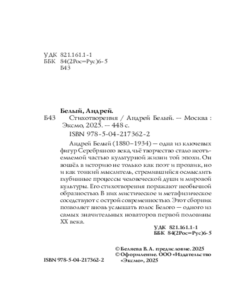 Серия: Собрание больших поэтов Андрей Белый (1880–1934) — одна из ключевых фигур Серебряного века, чьё творчество стало неотъемлемой частью культурной жизни той эпохи. Он вошёл в историю не только как поэт и прозаик, но и как тонкий мыслитель, стремившийся осмыслить глубинные процессы человеческой души и мировой культуры. Его стихотворения поражают необычной образностью. В них мистическое и метафизическое соседствуют с острой современностью. Этот сборник позволяет вновь услышать голос Белого — одного из самых значительных новаторов первой половины XX века. |