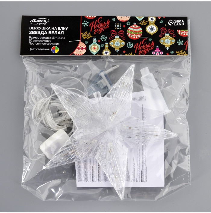 Luazon Lighting Верхушка на елку светодиодная «Звезда белая»новинка В данный момент этот товар отсутствует в продаже. Возможно, у нас найдется аналогичный или похожий товар здесь. Разнообразные световые фигуры — это прекрасный вариант оформления к любому торжеству, а также отличное дополнение интерьера. Сегодня такие фигуры довольно активно используются в качестве светового оформления различных кафе, торговых центров, магазинов и ночных клубов, равно как и для создания оформления в доме, офисе, и даже на улице. Знакомые на первый взгляд фигурки снабжены одним или несколькими светодиодами, что превращает их из привычных в сказочные. Верхушка на елку светодиодная «Звезда белая», 16 см, 10 LED, 220 В, свечение мульти. |