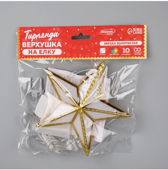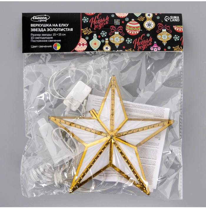 Luazon Lighting Верхушка на елку светодиодная «Звезда золотистая»новинка -35%