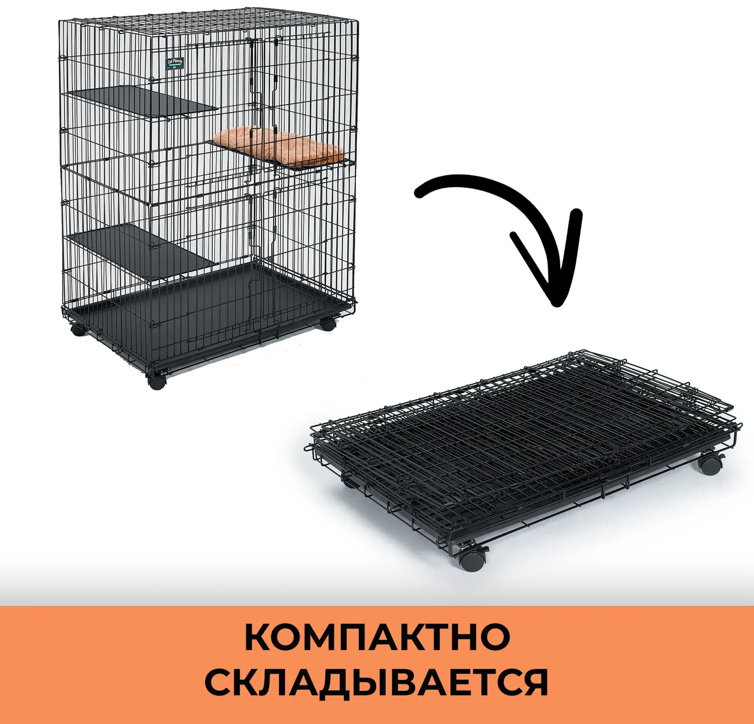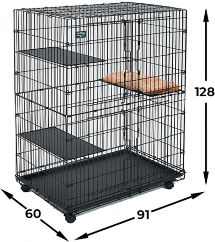 Двухэтажная клетка «Cat Playpens» для кошек прекрасно подойдет для вашего питомца! Оснащенная 2 фронтальными дверьми, 3 удобными полками, выдвигающимся поддоном и колесами, она обеспечит комфорт вашего питомца и облегчит транспортировку! Подарите вашему любимцу дополнительный комфорт с мягкой лежанкой MidWest (продается отдельно)! |