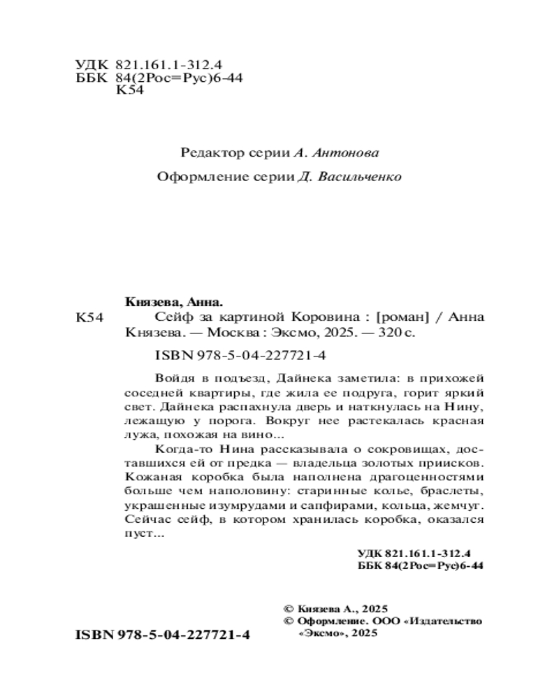 Серия: Преступные камни. Лучшие детективы о драгоценностях. Новое оформление (обложка) Войдя в подъезд, Дайнека заметила: в прихожей соседней квартиры, где жила ее подруга, горит яркий свет. Дайнека распахнула дверь и наткнулась на Нину, лежащую у порога. Вокруг нее растекалась красная лужа, похожая на вино... Когда-то Нина рассказывала о сокровищах, доставшихся ей от предка — владельца золотых приисков. Кожаная коробка была наполнена драгоценностями больше чем наполовину: старинные колье, браслеты, украшенные изумрудами и сапфирами, кольца, жемчуг. Сейчас сейф, в котором хранилась коробка, оказался пуст... |