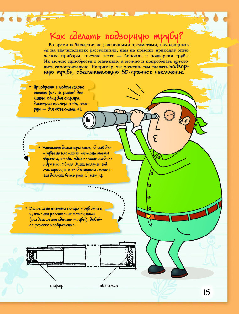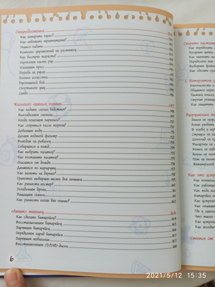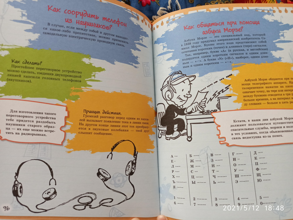 Большая книга, листы плотные. Очень красочное издание. Много разной познавательной информации. Предлагаются самостоятельные опыты и поделки, но в некоторых случаях в качестве материалов для этих опытов указываются компоненты, о существовании которых я даже не знаю. Для 5-6 классов книга полезная.