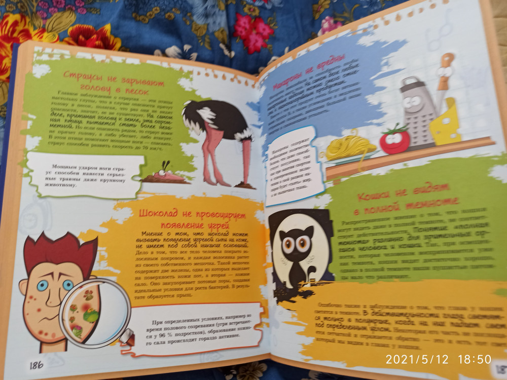 Только сегодня купили. Подарили сыну на Новый год. К чтению сын особого интереса не выказывает. Пролистала сама. Понравилось качество бумаги, оформления, и легкое написание вопроса. Надеюсь сын со временем проявит интерес и втянется в чтение! Но книга действительно познавательная. Даже для меня, некоторые темы были открытием)! Спасибо за оперативность и такие книги магазину Flip.kz!