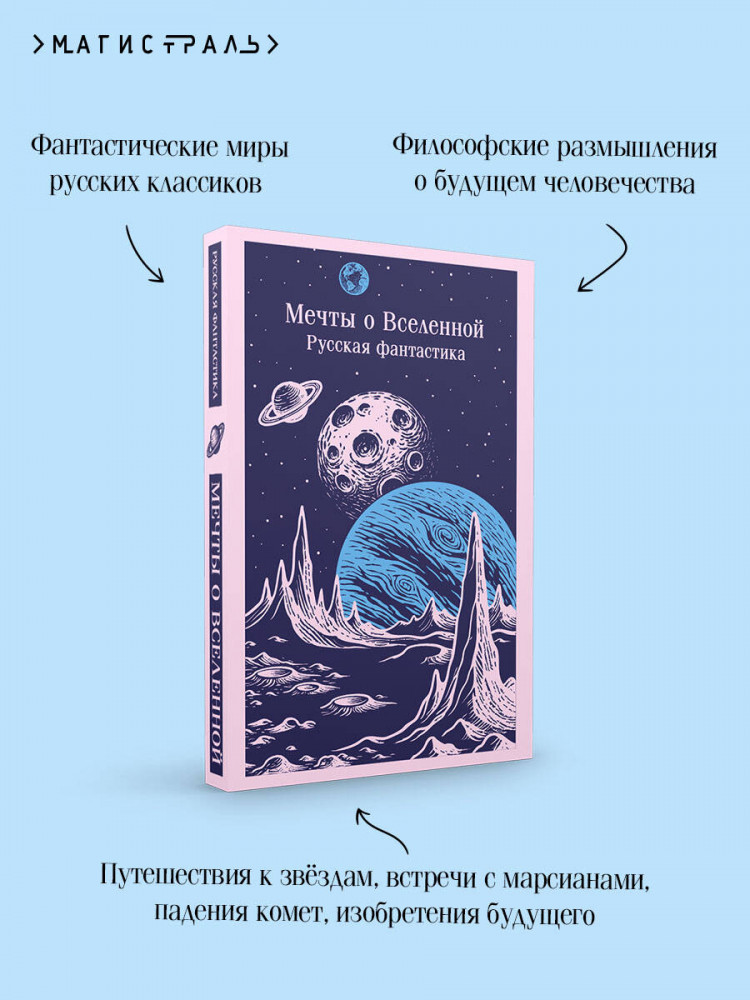 Серия: Магистраль. Главный тренд Человечество еще только мечтало о звездах, а русские писатели-фантасты уже бороздили пространства Вселенной на страницах своих книг. Путешествие на Луну, встреча с марсианами, падение комет, изобретение жидкого солнца и победа над болезнями — их смелые прогнозы во многом предвосхитили будущее. В сборник вошли рассказы В. Одоевского, К. Циолковского, П. Инфантьева, Л. Афанасьева, А. Куприна, А. Беляева, С. Бельского. |