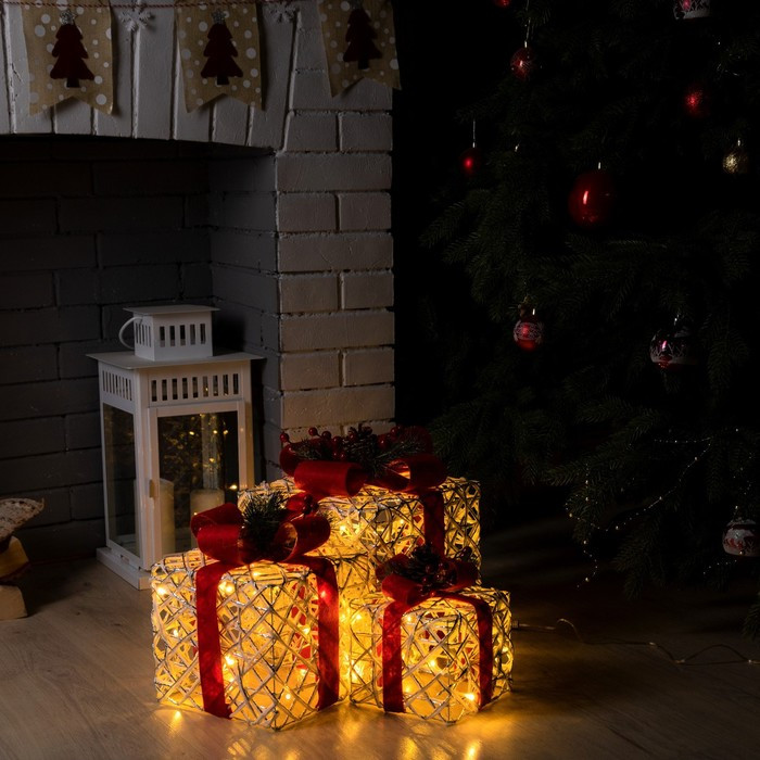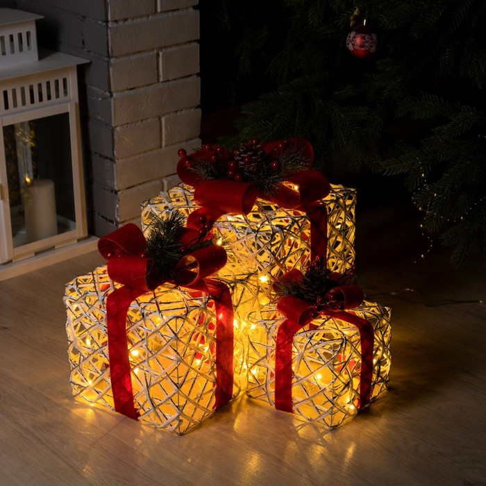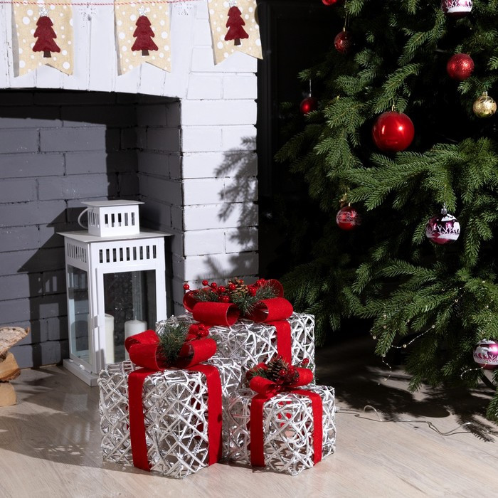 Luazon Lighting Фигура светодиодная «Серебристые подарки с красной лентой»новинка -25%