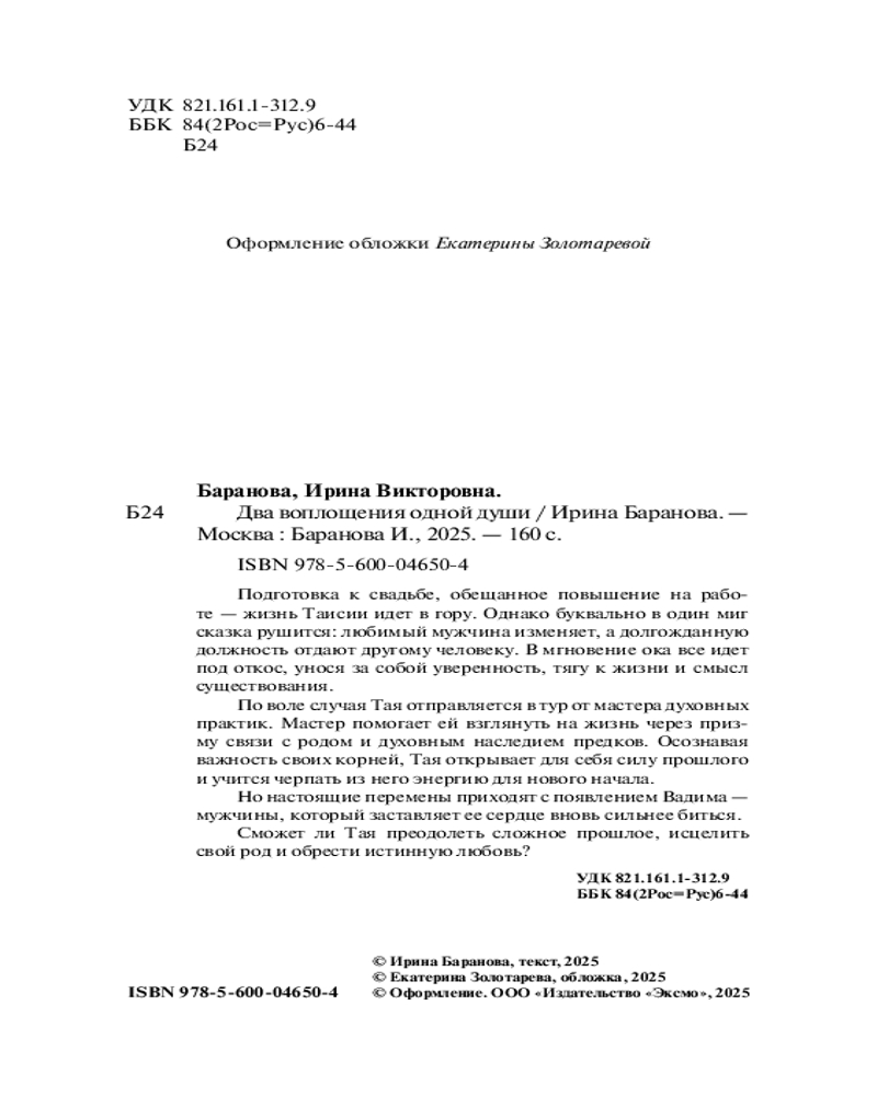 💳 Оплатить за товар можно при получении 🇰🇿 Есть бесплатная доставка по Казахстану 🎁 Копите бонусы с каждой покупки Серия: Мастера прозы Подготовка к свадьбе, обещанное повышение на работе — жизнь Таисии идет в гору. Однако буквально в один миг сказка рушится: любимый мужчина изменяет, а долгожданную должность отдают другому человеку. В мгновение ока все идет под откос, унося за собой уверенность, тягу к жизни и смысл существования. |