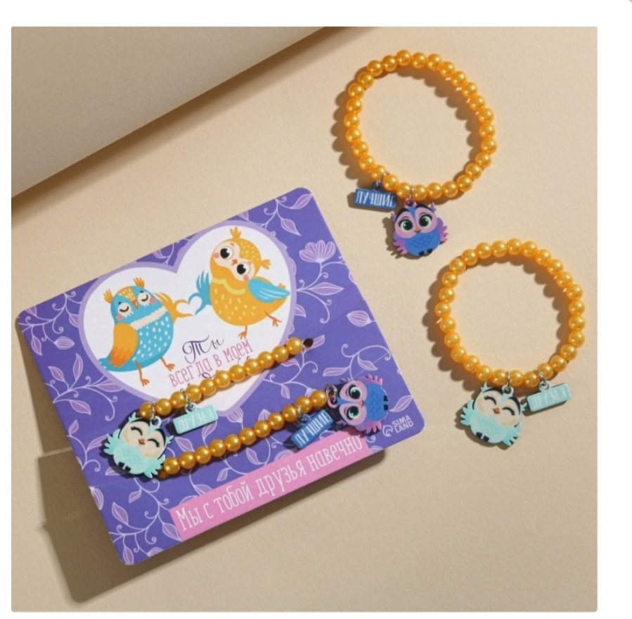 Парные браслеты для лучших подружек с надписью «Лучшие друзья» и очаровательными совушками. Милый подарок для настоящих друзей. |
