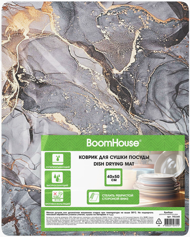 Коврик для сушки посуды BoomHouse с диатомитовым слоем эффективно впитывает влагу и быстро сохнет, обеспечивая чистоту и порядок на кухне. Стильный и гигиеничный аксессуар идеально подойдёт для тех, кто заботится о собственном комфорте! Нано-коврик для сушки посуды BoomHouse — это современное гигиеничное решение для кухни, объединяющее в себе высокую функциональность и инновационные материалы. |