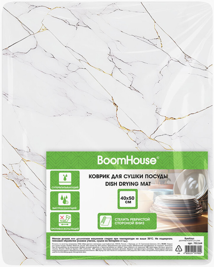 Коврик для сушки посуды BoomHouse с диатомитовым слоем эффективно впитывает влагу и быстро сохнет, обеспечивая чистоту и порядок на кухне. Стильный и гигиеничный аксессуар идеально подойдёт для тех, кто заботится о собственном комфорте! Нано-коврик для сушки посуды BoomHouse — это современное гигиеничное решение для кухни, объединяющее в себе высокую функциональность и инновационные материалы. |